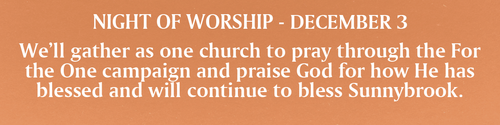 God has blessed Sunnybrook Community Church in so many ways. We believe the best is yet to come! Mark your calendar for these upcoming events as they are essential to our church's future. You won't want to miss them!