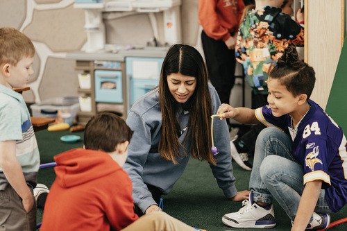 The check in team warmly welcomes all families to our kids' space. They assist first-time families by guiding them through the registration and check-in process.